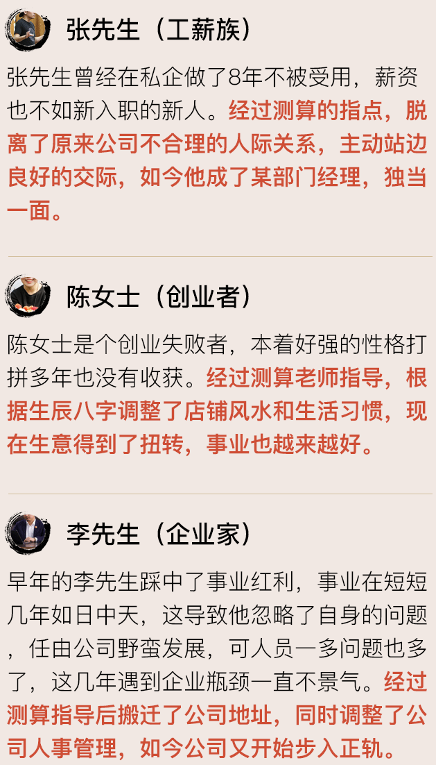 已服务 4113681人, 98.9%的用户对测算满意,同时对 自己的事业发展有很大帮助!